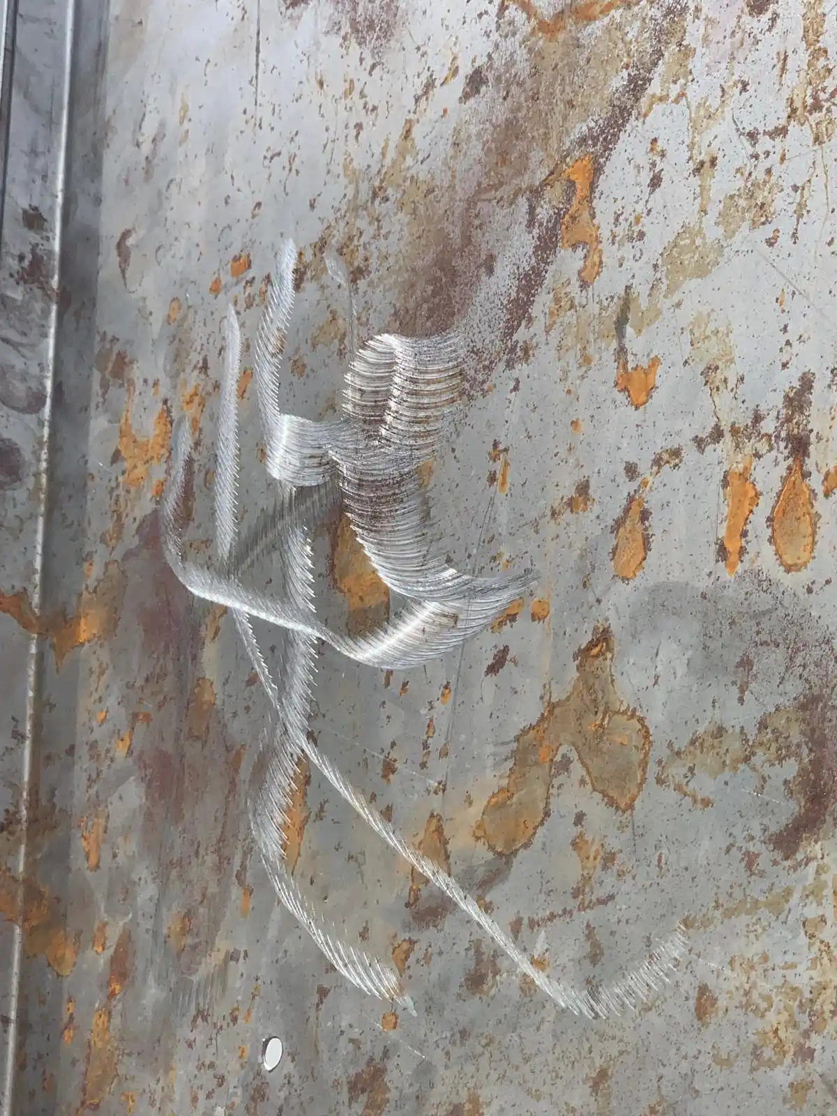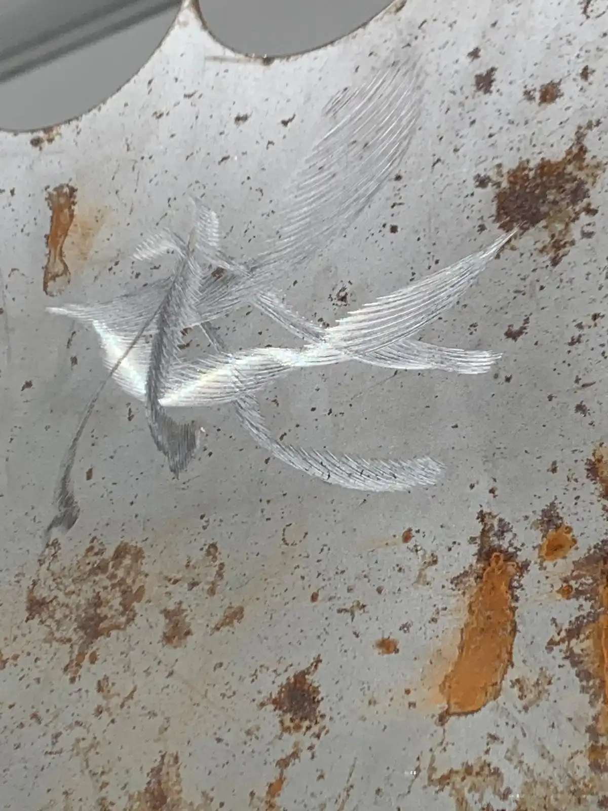 The salvaged pieces of steel and one of copper (heavily marked) were of the following dimensions: 55.88x41cm, 61.55x37.69cm, 64x41cm, 55x43cm, 55x41cm.