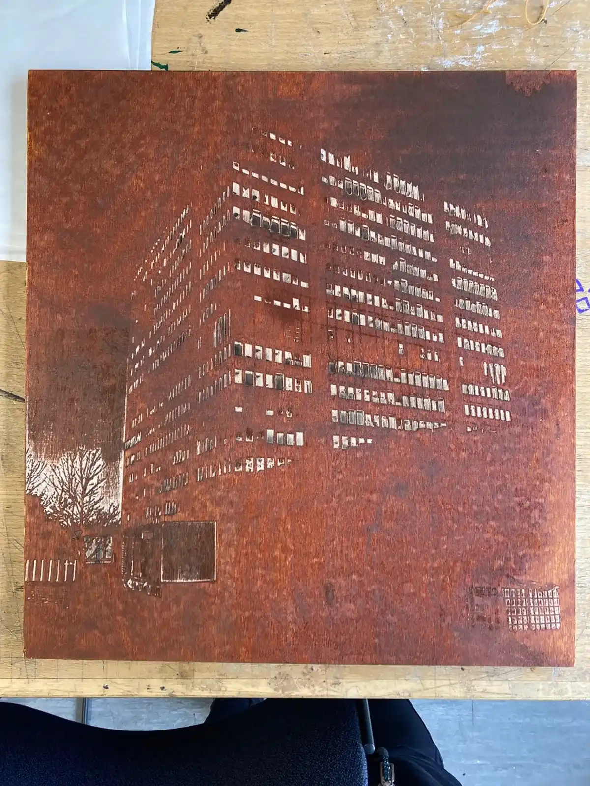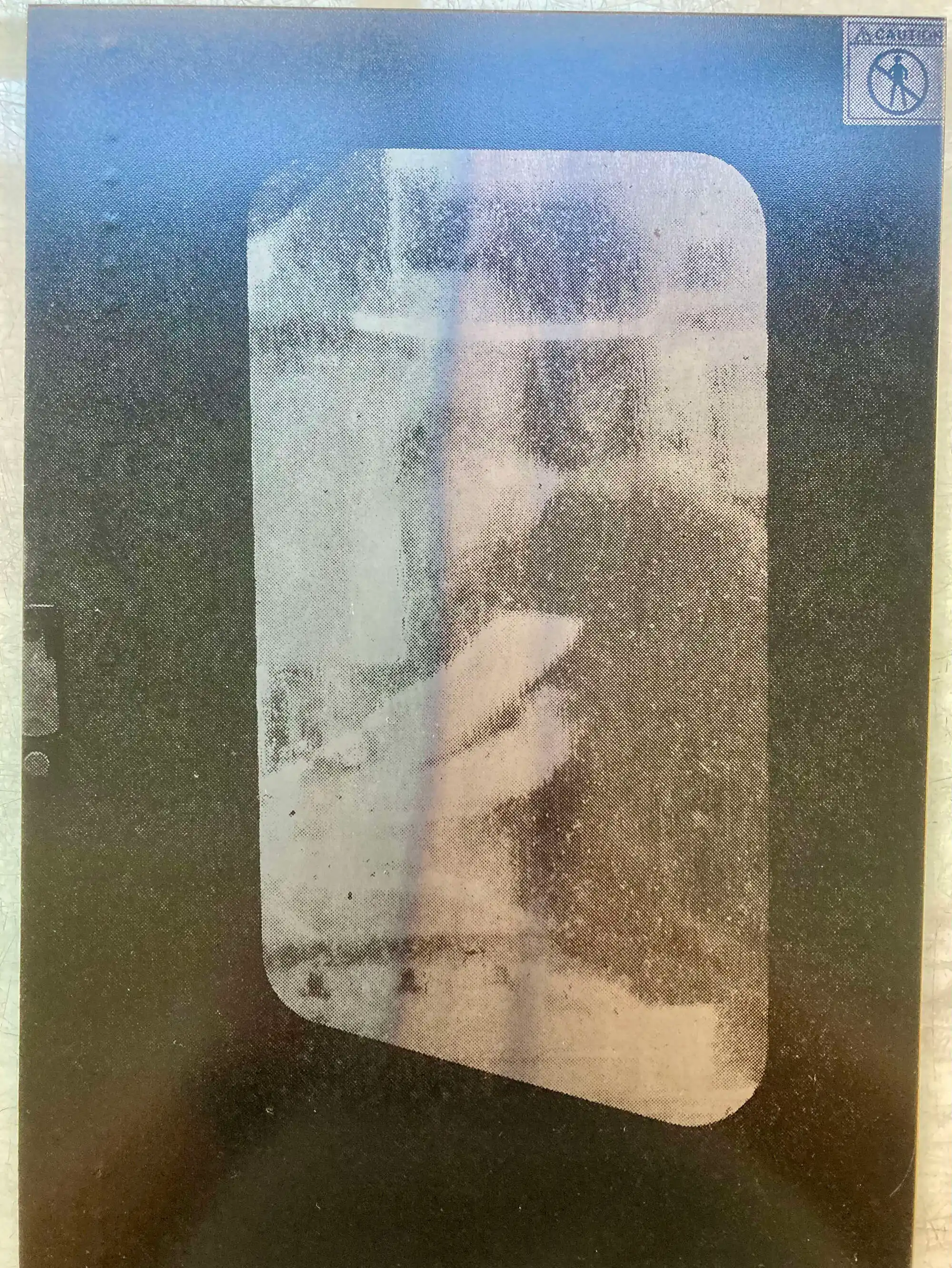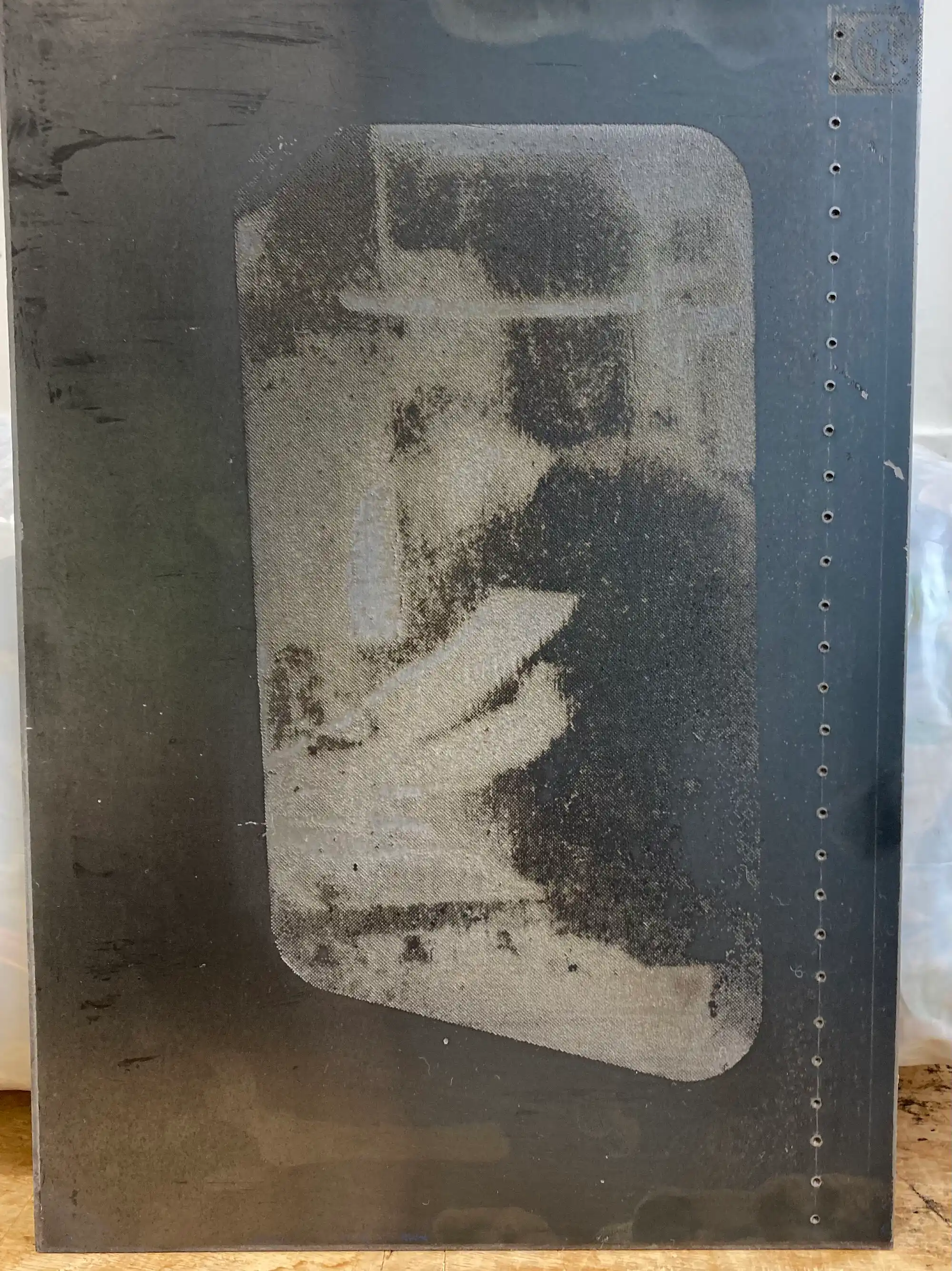Experiments with printing on salvaged slate. Used metal stencil of Port Talbot steelworks.