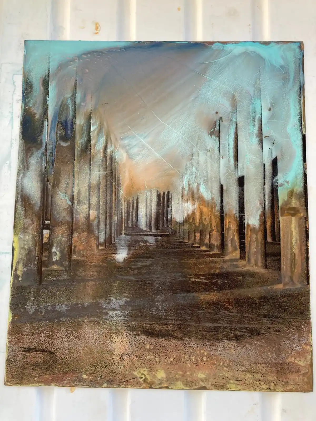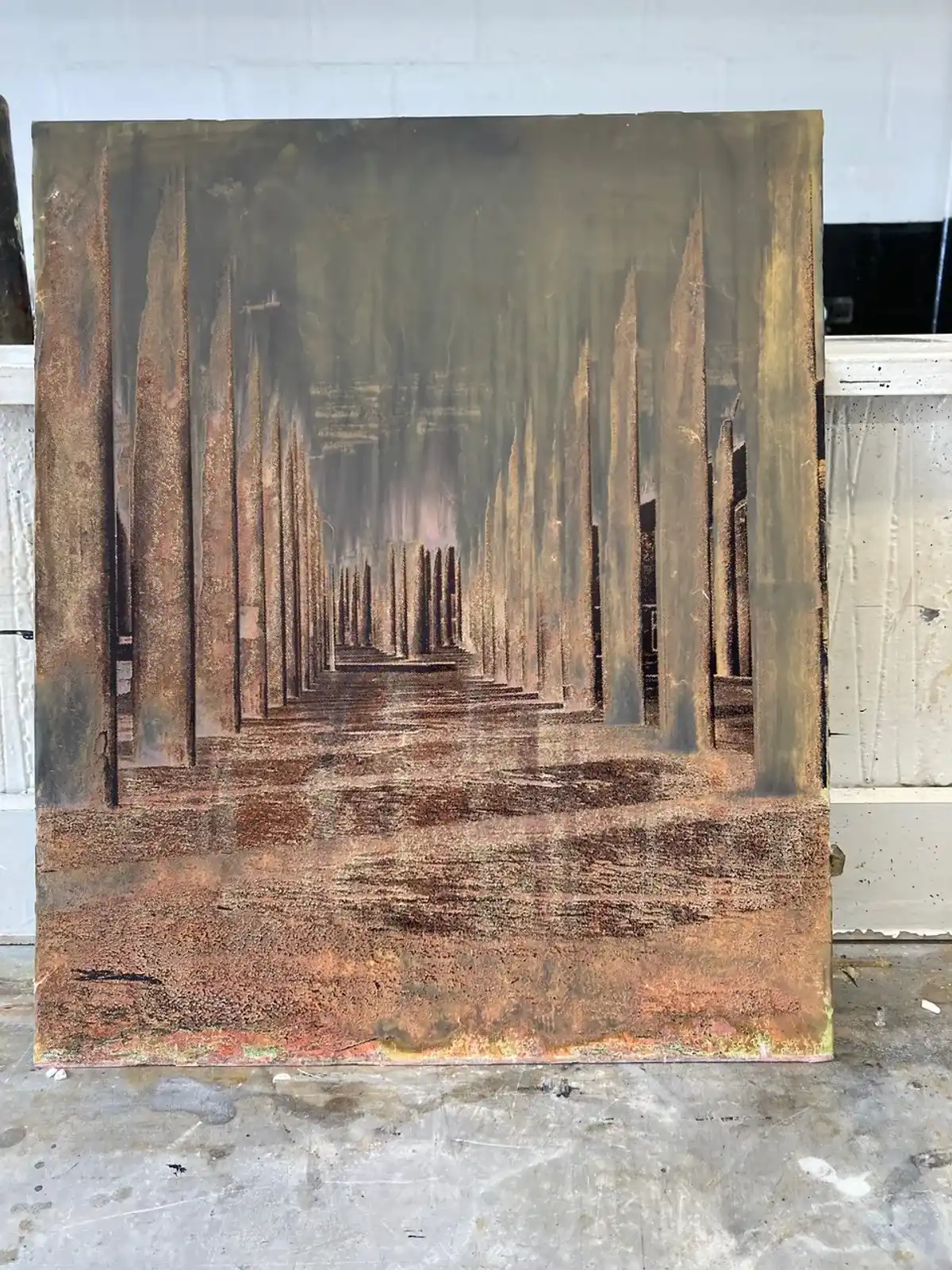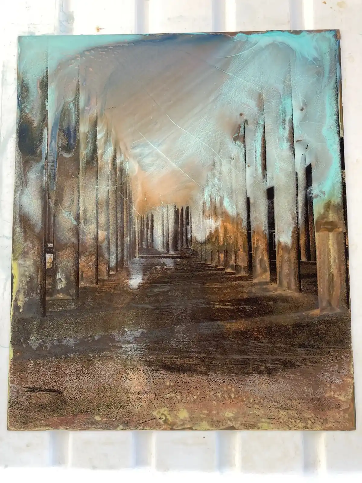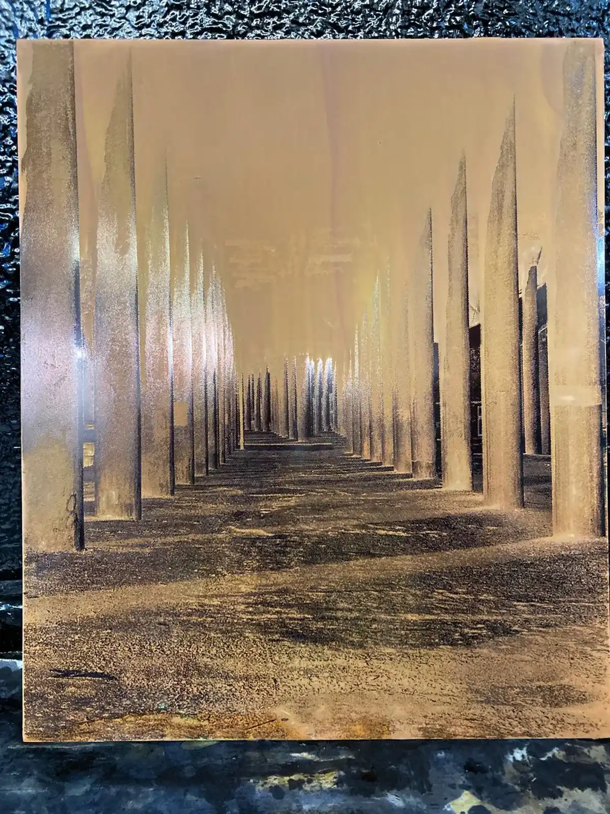 Experiments with printing on salvaged slate. Used metal stencil of Port Talbot steelworks.