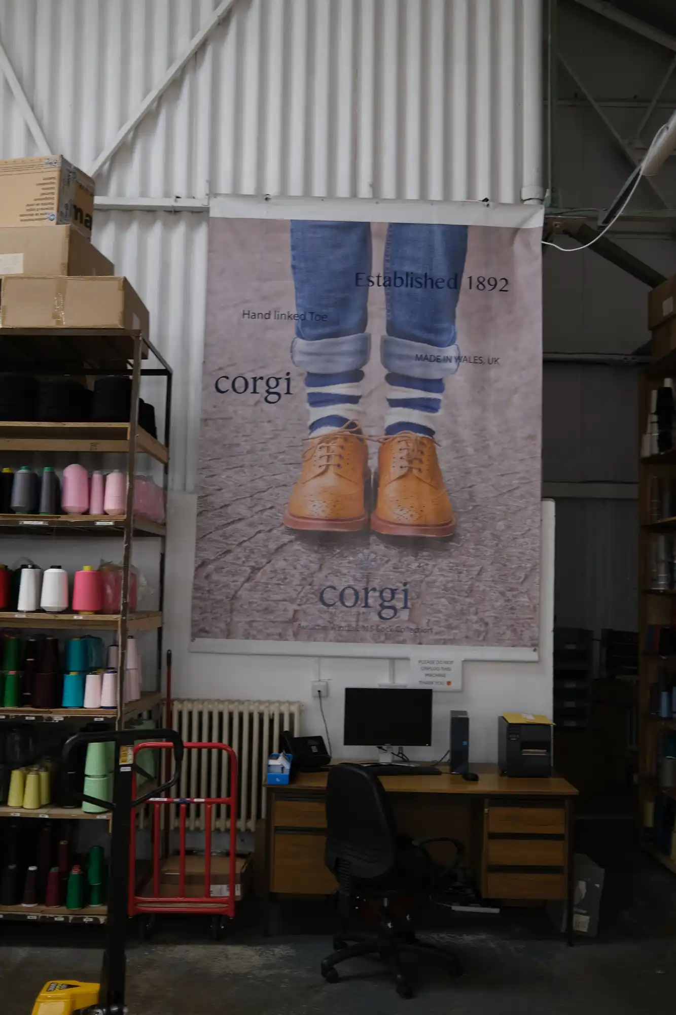 Corgi Socks and Knitwear (with Royal Warrant). A family run business in my home town of Ammanford, South Wales, established in 1892 and where my mother worked in the 1950s. On visiting the premises there was a real sense of heritage which has been maintained over five generations.