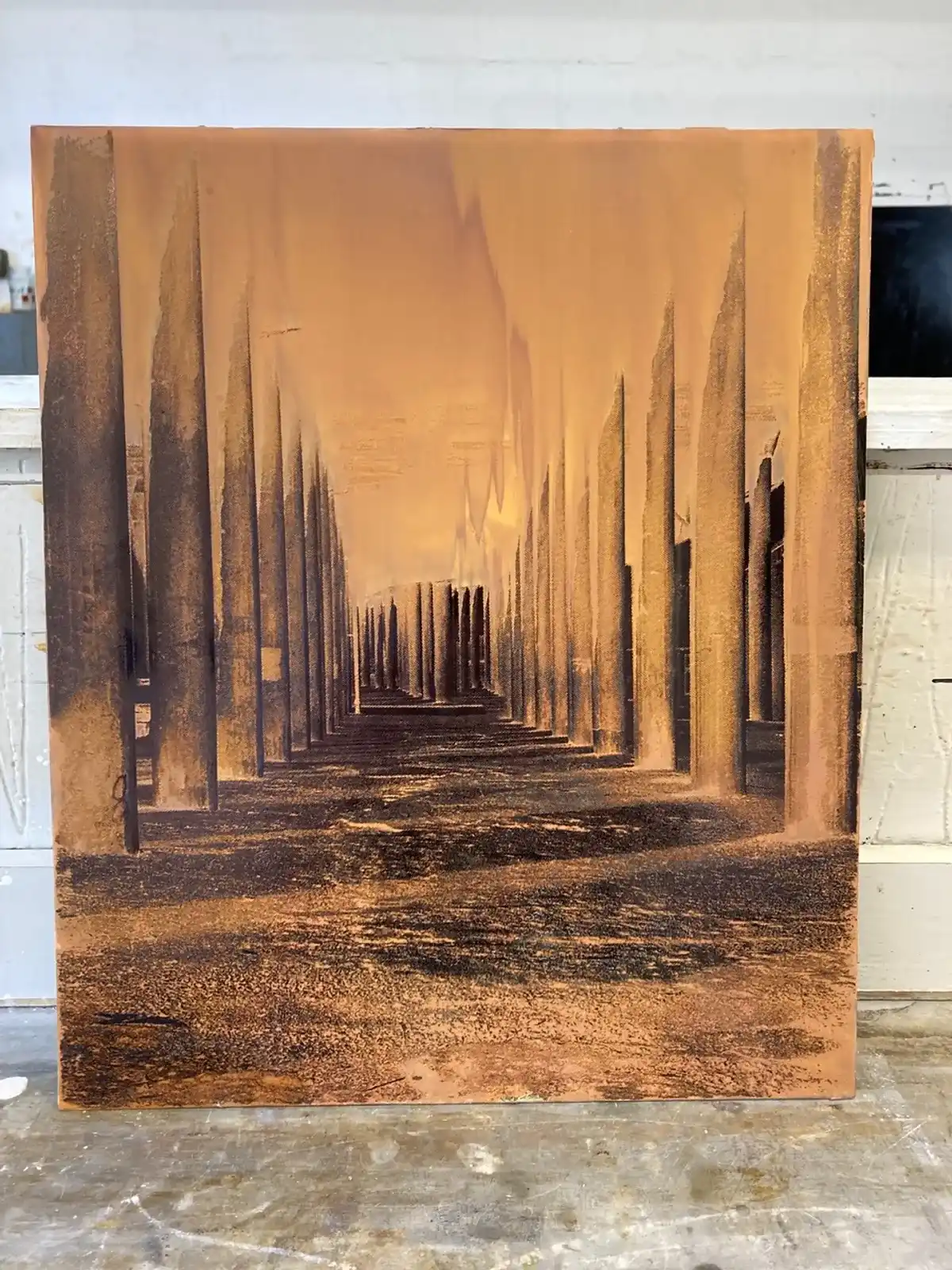 The following mono print accompanied some writing I did for a project initiated as a collaboration with MA Illustration and culminated in a show at Peckham Levels and a publication entitled “Beneath the Fabric” for which I provided this, and two other stories. A number of screen prints/monoprints were produced. This may well be something I will pursue in the future in the style of a photobook or short film.