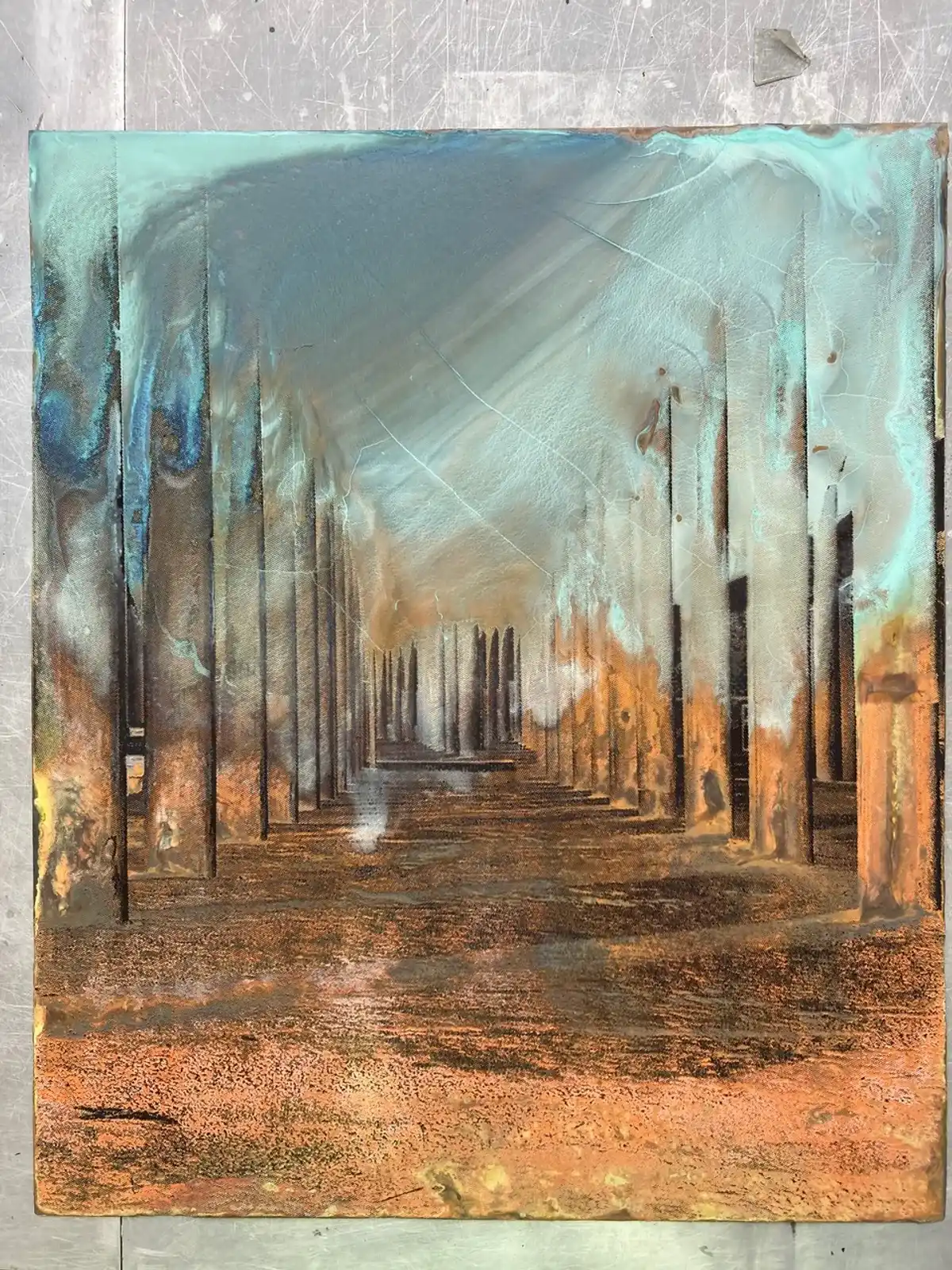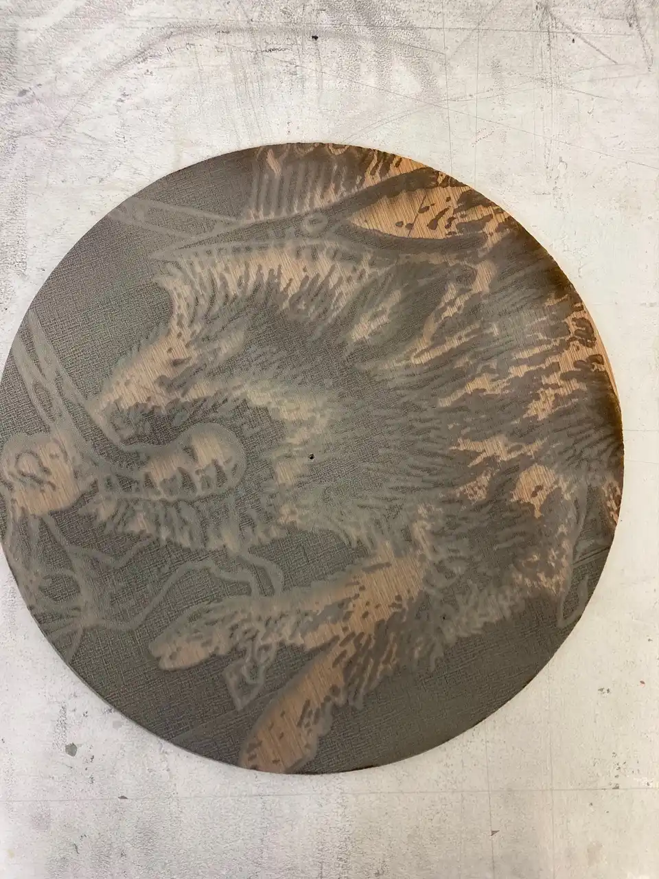There was also the opportunity over the summer break to craft the image of a bird of prey, the red kite, into a piece of salvaged steel, 45cm x 41cm. This was done with a metal grinder and produced a really pleasing effect, to which I may later apply ink with scrim on returning to the workshops in September. The red kite is a bird of prey known in this area and also features in Welsh folklore and The Mabinogion.