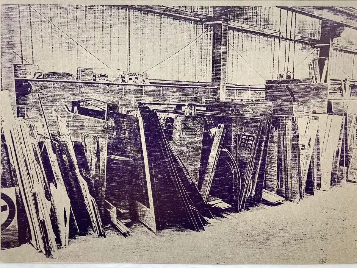 As outlined in the main section of Critical Reflection, this has been the main source of material. I have both attended the venue and utilised the machinery and products from there. It is a vibrant and highly productive environment with which I will continue to maintain a collaboration. There is a tangible sense of pride in what they do and in the camaraderie which is evident across the board. Not only did I take photographs of the people concerned but also of the machinery which in some instances was almost 100 years old. In fact, those working there were keen to explain the workings of each machine and their history. In doing so I began to pay more attention to this relationship and how important it was to them that each machine was cleaned and well maintained. These machines often took on identities of their own, and the manufacturers’ names which were embossed on them became more personal. These are variously shown with names such as “Hunko”, “Cooper”, and “Colchester” coming to life in their own way, with amusing stories and comparisons with film characters.